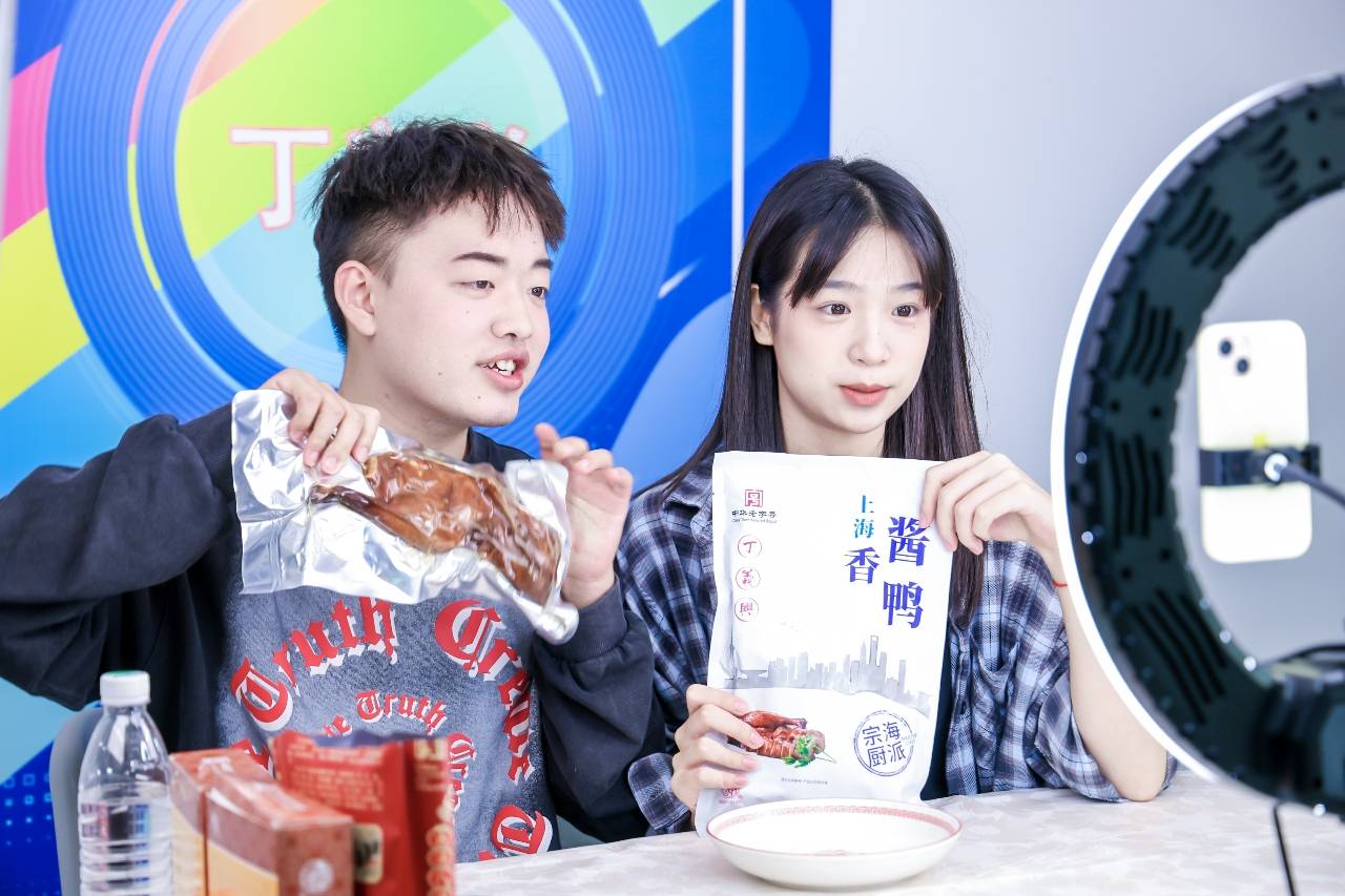 大赛共有包装设计与电商直播两个赛道,经过三个月的筹备、征集、复赛,最终遴选出30份作品参与决赛。一等奖的获奖作品结合金山农民画的元素来设计校庆产品,并成功落地。在电商直播比赛中,有8支团队参加现场决赛,他们将传统与现代科技相结合,既宣传了老字号品牌,又为老字号注入了新活力,形成新“潮”品,助力老字号品牌弘扬中华文化自信。颁奖仪式上,上海丁义兴食品股份有限公司联同上海中侨职业技术大学发布“未来合伙人”线下实训计划,后续双方将继续整合资源,为更多高校生提供创业平台,助力高校大学生筑梦远航。
