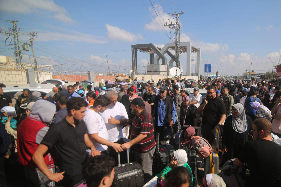 ▲10月16日,人们在加沙地带南部的拉法口岸前等待撤离加沙地带。
