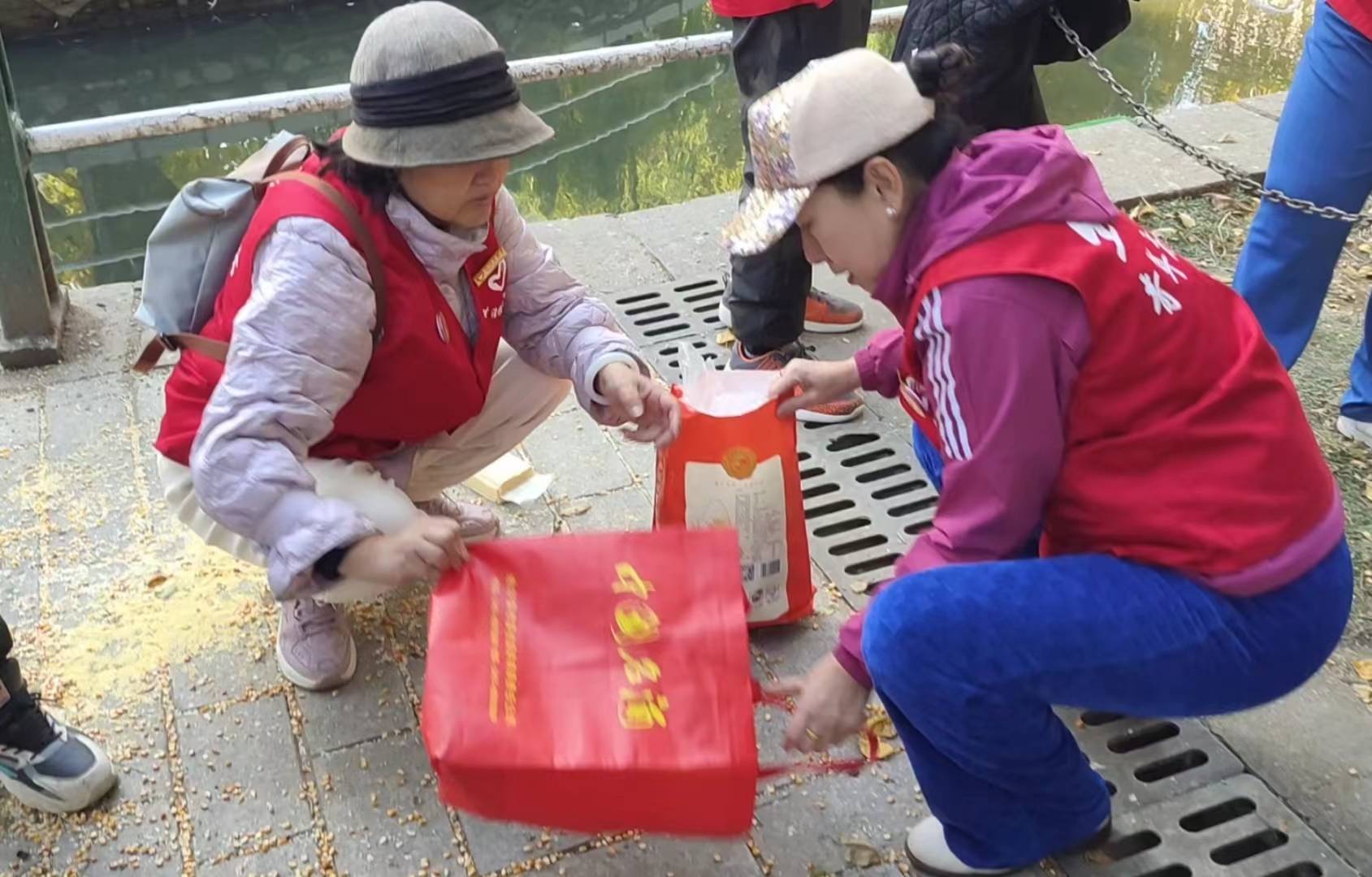 “我今天是第一次来参加捐粮活动,带了自家六斤小米,在志愿者的影响下,也想为公益出份力,我下次还来!”志愿者马春红对记者说。“我一听说要给鸳鸯捐粮,今天一大早上去市场买了5斤玉米粒。”两年来一直帮助鸳鸯的志愿者刘长宏告诉记者。