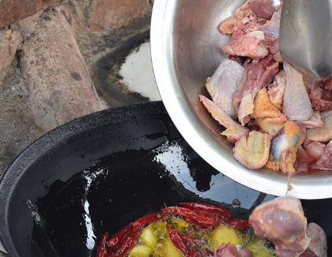 有些比较喜欢养生的顾客都会选择用这些土鸡炖鸡汤,而喜欢喝酒的人,则喜欢来这里吃上老板炒的小炒鸡,味道也非常不错,但是农家人做菜的方式非常简单,用的配料除了辣椒段,姜片,花椒和蒜瓣儿之外,就是盐和酱油了,最原始的调料做出最好吃的农家饭。将处理好的鸡剁成块儿,下锅之前一定要用开水焯一下,因为经常吃草的鸡会有一股草腥味,而如果不焯水的话,炖出来的鸡汤会有一股独特的味道,有些吃不惯的城里人会难以下咽。
