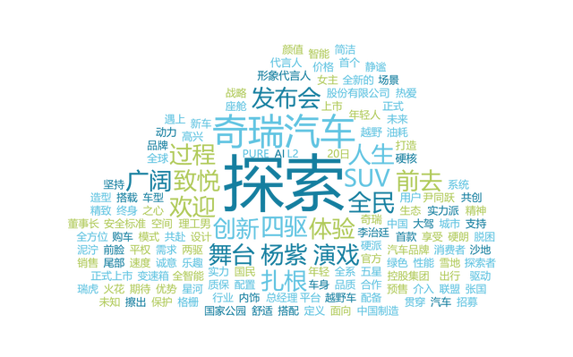 奇瑞探索06由杨紫代言发布传播的词云图