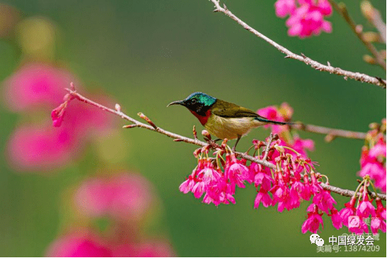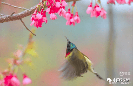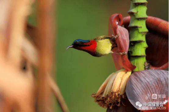 这么绚丽,这么耀眼却是叉尾太阳鸟的雄鸟。