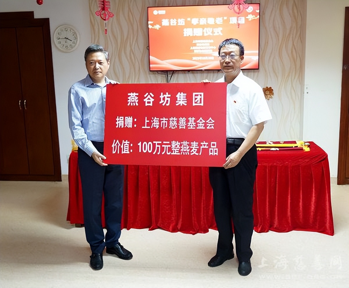 10月19日下午,燕谷坊集团向上海市慈善基金会捐赠价值100万元燕麦全谷物产品,助力“孝亲敬老”系列慈善公益活动,在重阳节来临之际,将关爱送到老人们手中。