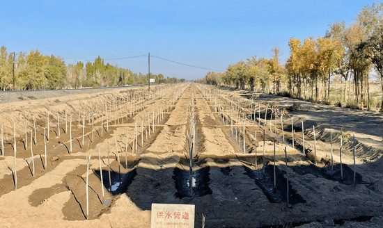 一四九团党委紧盯生态振兴这一目标,筑牢团场绿色生态屏障,近两年共投入资金660万元,重点对退化林进行修复;对道路林和防风林中死亡的树木进行补植补造或异地造林,努力恢复原有林带的风貌和功能;并通过因地制宜选用树种,强化管理等措施,确保了树木的成活率和健康生长。据了解,此次秋季造林全团共栽植复叶槭、长枝榆、沙枣树、红柳、梭梭等绿化苗木15.6万株,面积2300亩。