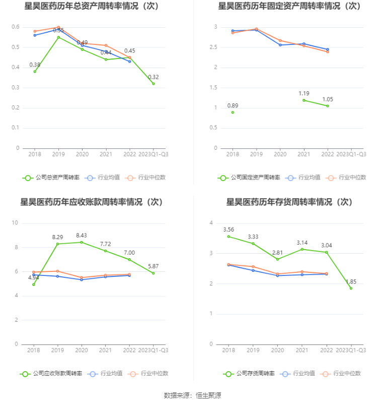 营运能力方面,2023年前三季度,公司公司总资产周转率为0.32次,上年同期为0.30次(2022年前三季度行业平均值为0.33次,公司位居同行业64/111);公司应收账款周转率、存货周转率分别为5.87次、1.85次。