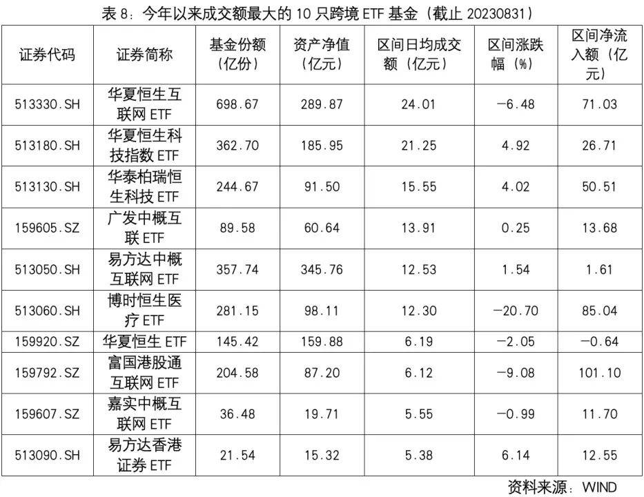 当前存续的98只跨境ETF基金产品当中,今年以来成交额最大的10只基金以跟踪恒生互联网指数、恒生科技指数、中国互联网50指数为主。