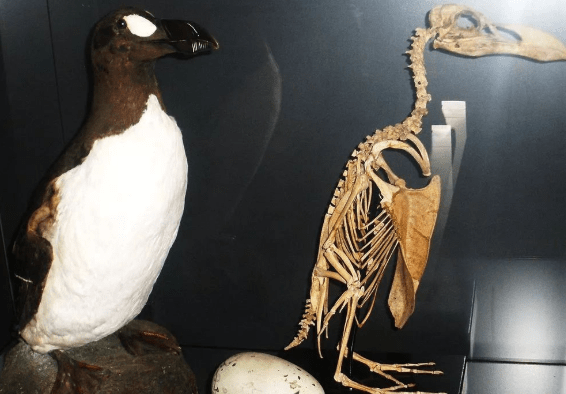 5、大海雀。它也是一种不会飞的鸟,看起来胖胖的,十分笨重,不过这种的鸟的战斗力还是不弱的,再加上它们常常是群居的状态,所以没有太多的天敌,然而由于它肉质鲜美,身上的皮毛还具有重要作用,于是终究没有逃过人类的魔爪,可以说是被吃到灭绝了,