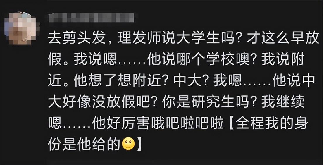 都说出门在外身份是自己给的,但有的时候也可能是别人给的,尤其是当一名社恐学生遇到了社牛理发师,那对话就透露着一些不寻常。
