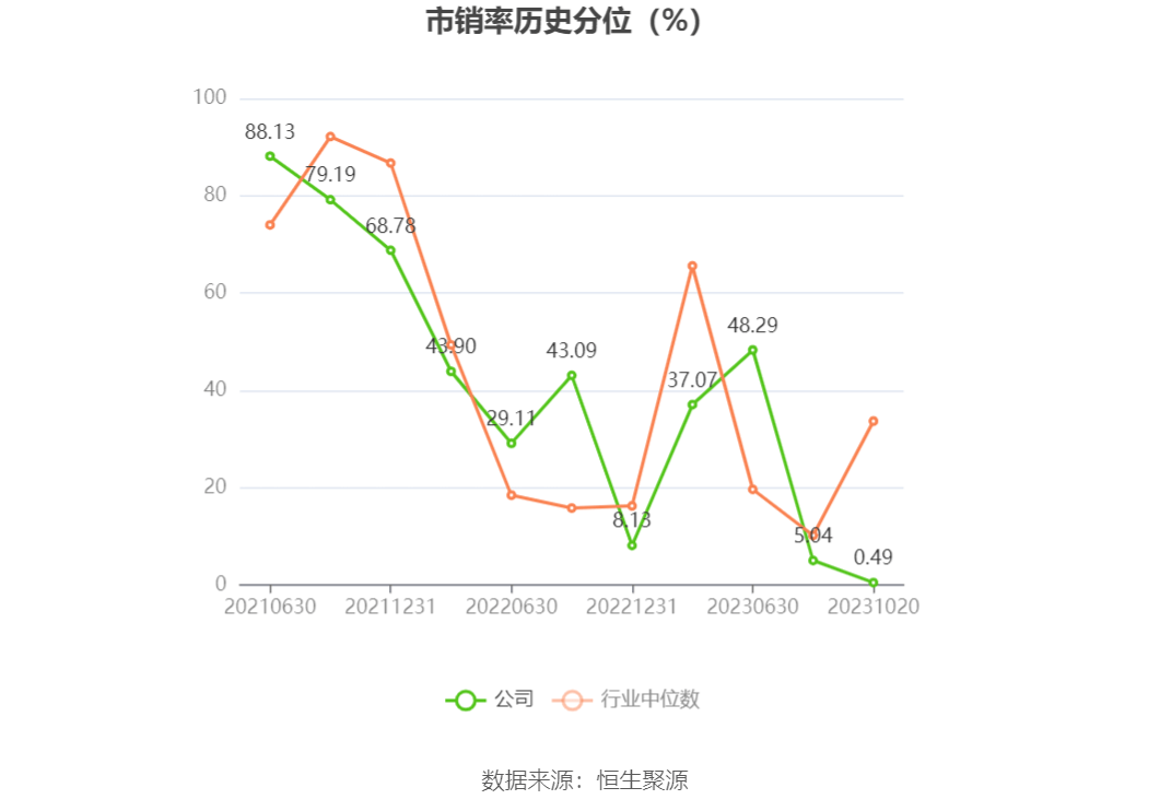 2023年前三季度,公司营业收入现金比为55.67%,净现比为-59.80%。