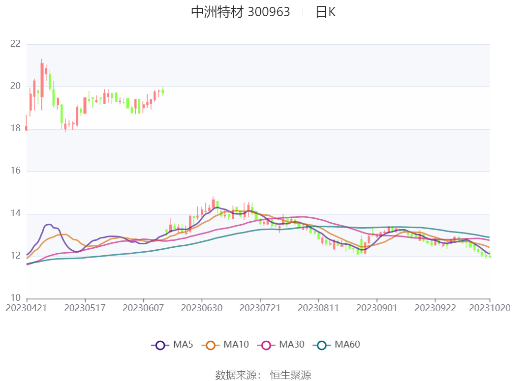 以10月20日收盘价计算,中洲特材目前市盈率(TTM)约为28.06倍,市净率(LF)约为2.84倍,市销率(TTM)约为2.61倍。