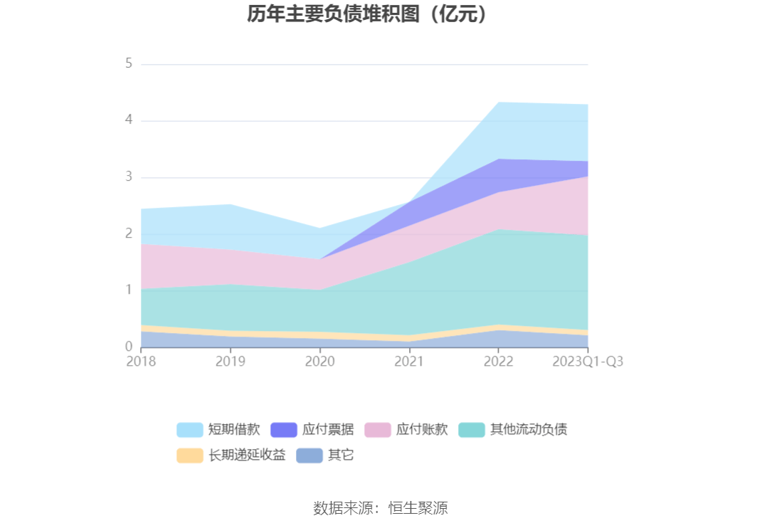 负债重大变化方面,截至2023年三季度末,公司应付账款较上年末增加58.57%,占公司总资产比重上升2.52个百分点;应付票据较上年末减少53.72%,占公司总资产比重下降2.40个百分点;应付职工薪酬较上年末减少99.90%,占公司总资产比重下降0.78个百分点;其他应付款(含利息和股利)较上年末增加42.06%,占公司总资产比重上升0.13个百分点。