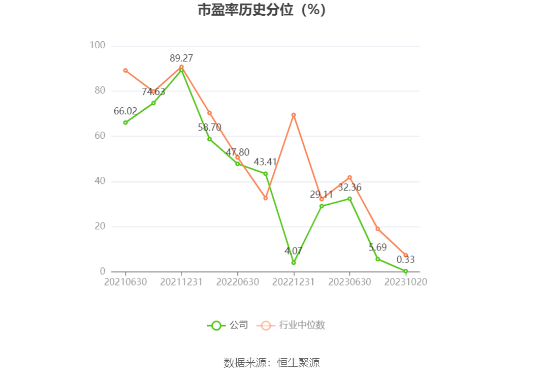 市盈率为负时,不显示当期分位数,会导致折线图中断。
