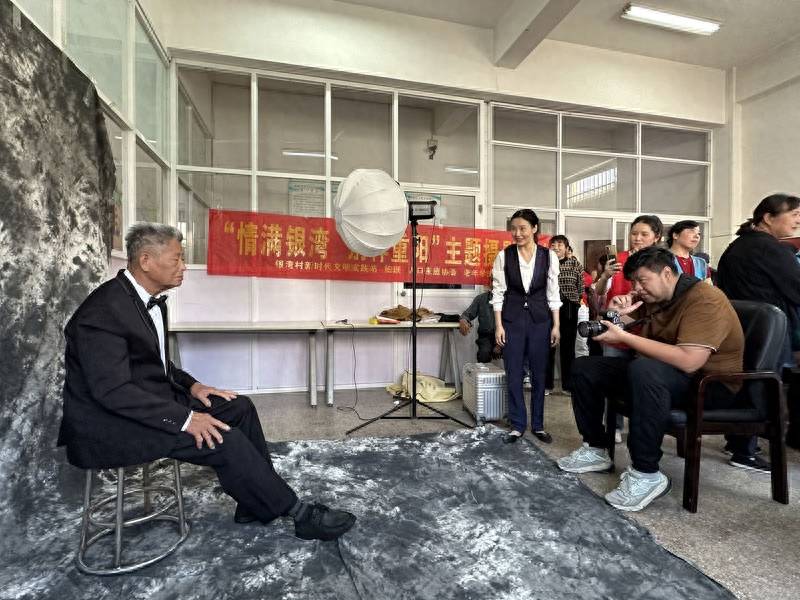“来,爷爷奶奶,靠近一点,笑一下……”在递铺街道银湾村文化礼堂,银发白纱的奶奶们面向镜头笑容灿烂,摄影师不停按动快门,弥补老年人结婚时没有婚纱照的遗憾,用光影定格他们相濡以沫的爱情。