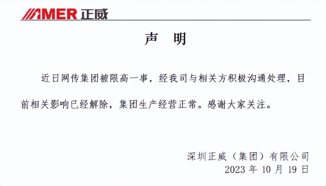 10月18日,正威新材(002201.SZ)宣布了公司法定代表人王文银被限制高消费的消息。
