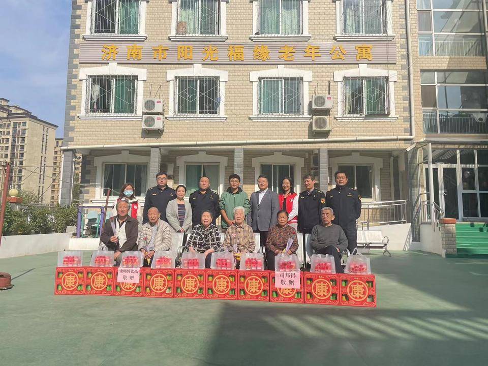 10月23日上午,济南市城管执法支队第五党支部联合七里山街道海珀社区、康师傅饮品、司邦得公司前往济南市阳光福缘老年公寓开展重阳节敬老活动,为老人们带去了欢乐和温暖。