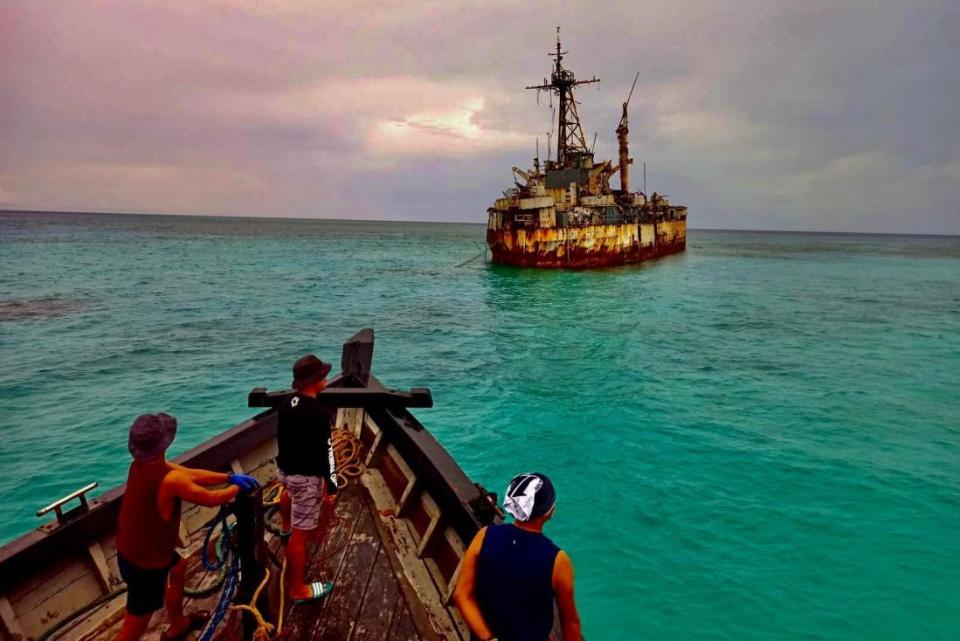 (菲律宾木质补给船,故意穿越我国海警5203舰的航线)