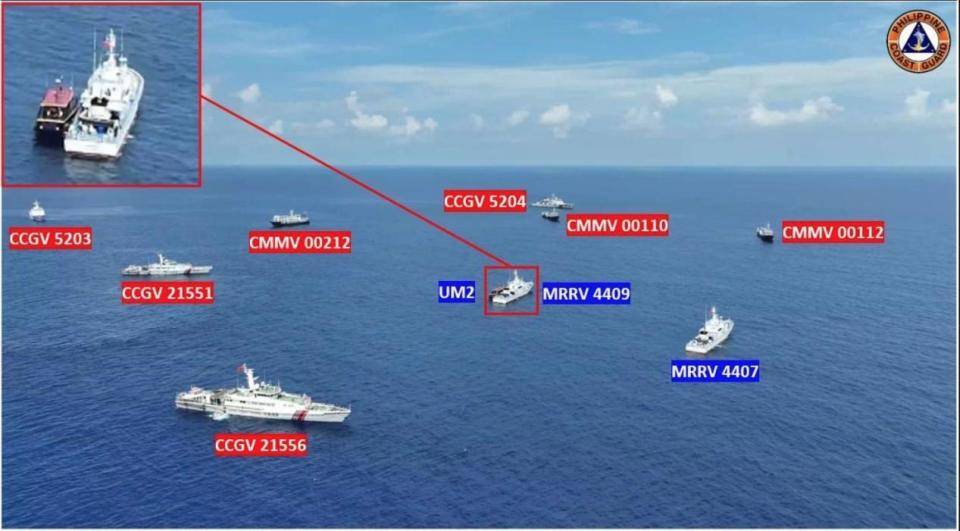 马科斯表示,自己与安全部门进行了一次会晤,他得知一艘菲海岸警卫队的船只,在与一艘中国海警船“相撞”后,出现了“受损”情况。菲政府发布声明称,马科斯已经下令,要对中菲船只“相撞”的事件进行调查。菲方单方面宣布,由于中国海警船“鲁莽”的行为,导致菲船只在其所谓的专属经济区内受损。