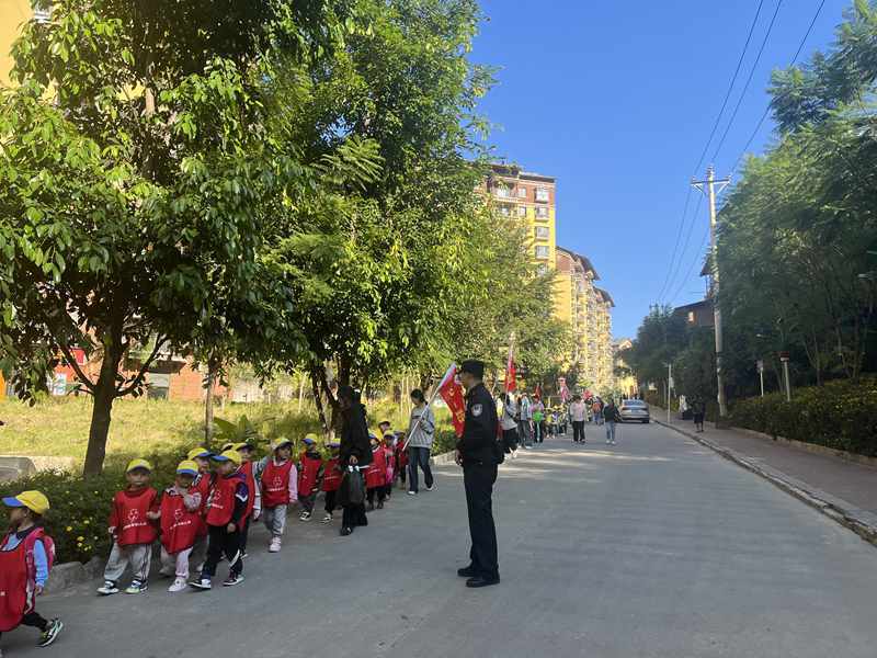 早上9时30分,该警务室提前到幼儿园及周边路口,对沿线道路进行交通疏导,针对幼儿年龄小、人数多、队伍长等实际情况,采取徒步伴随安保措施,在该警务室民警辅警约1小时的的全力保障下,10时30分许,泽福社区幼儿园400余师生平安到达秋游的目的地,随即有序地开展秋游活动。
