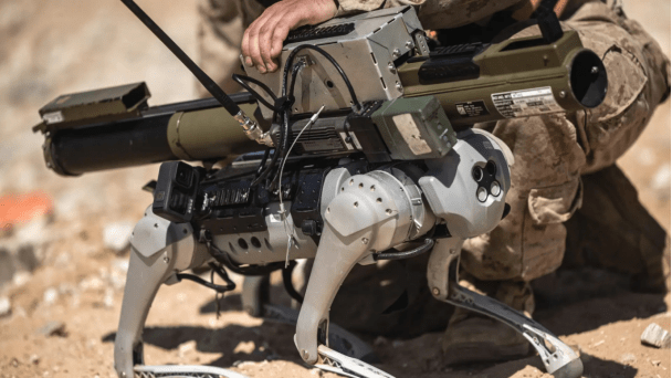 报道提到,美国海军陆战队验证了这款机器狗使用 M72 火箭筒发现并攻击目标的能力。视频中,一名海军陆战队员通过控制台控制Unitree Go1,展示其通过障碍物和不平坦地形的能力。这款机器狗可以用于减轻步兵负担,接近并射击敌方防御工事以及攻击敌方装甲车辆等任务。