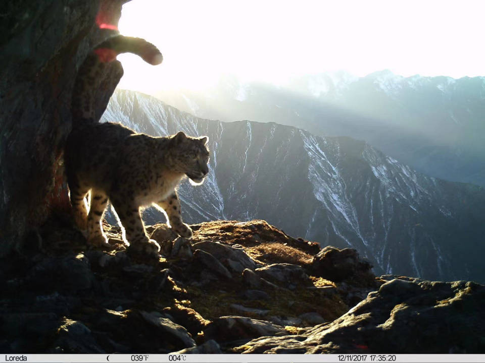 这是2017年12月11日红外相机拍摄到的雪豹。新华社发(大熊猫国家公园卧龙片区供图)