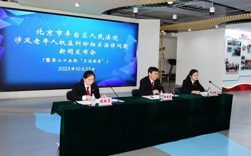 10月23日重阳节当天,北京丰台法院召开第二十五期“月说新案”新闻发布会,发布该院近三年来涉及老年人权益保护案件审理情况、典型案例及该院方庄法庭探索建立的爱老护老新枫桥法庭工作经验做法,展现该院积极回应老龄化社会发展需求的司法实践。