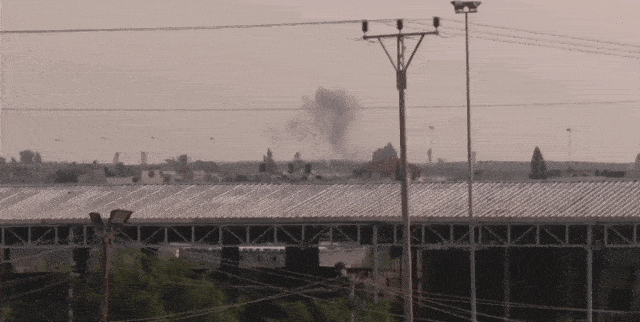 △拉法口岸附近发生爆炸后燃起的烟雾