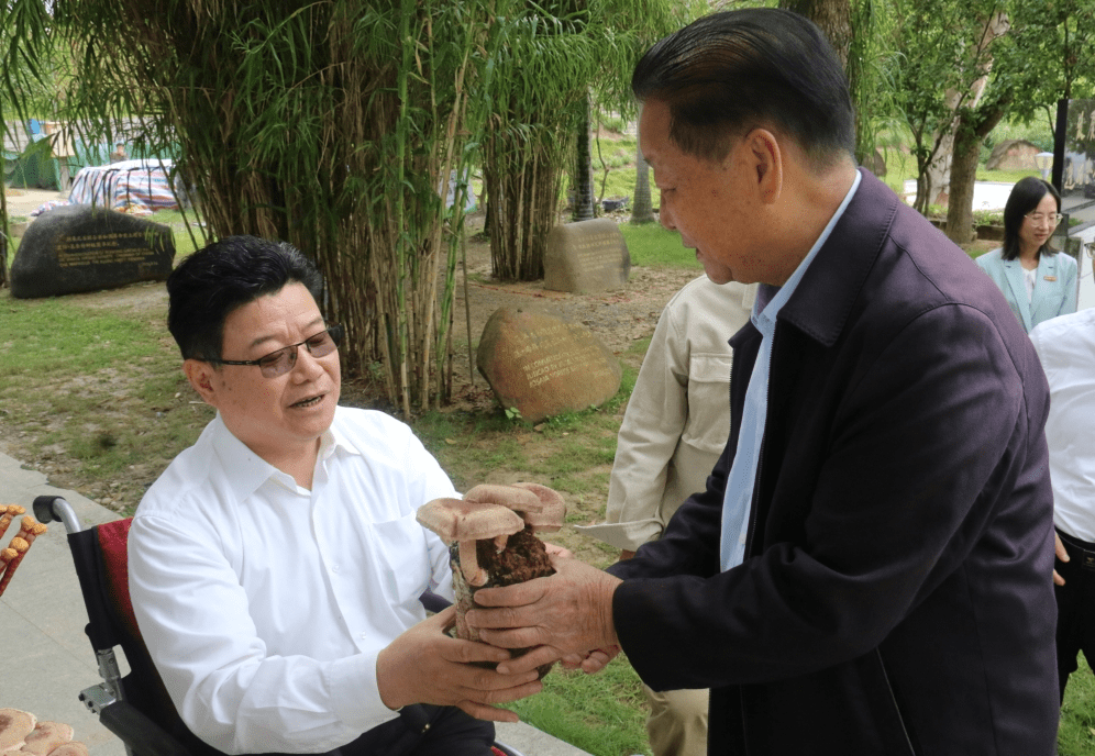 捐赠仪式前,孙建博在兰思仁的陪同下参观了学校的专题展厅,通过图片、视频、解说,了解了福建农林大学的办学历程和学校改革发展取得的成效。同时参观了国家菌草工程技术研究中心,孙建博与福建农林大学生命科学学院教授、国家菌草工程技术研究中心首席科学家林占熺探讨了菌草技术,就下一步在黄河流域种植菌草进行生态治理和造福人民,推动黄河流域生态保护和高质量发展进行了深入交流。
