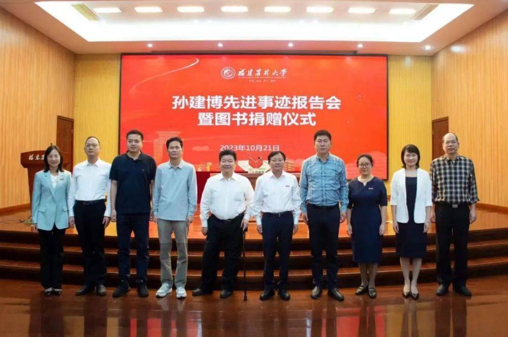 捐赠仪式上,孙建博向福建农林大学捐赠了《绿水青山就是金山银山》《孙建博的故事》《青山作证》《最美人大代表》等书籍。陈月霄代表图书馆接受赠书,并向捐赠人孙建博颁发了捐赠证书。