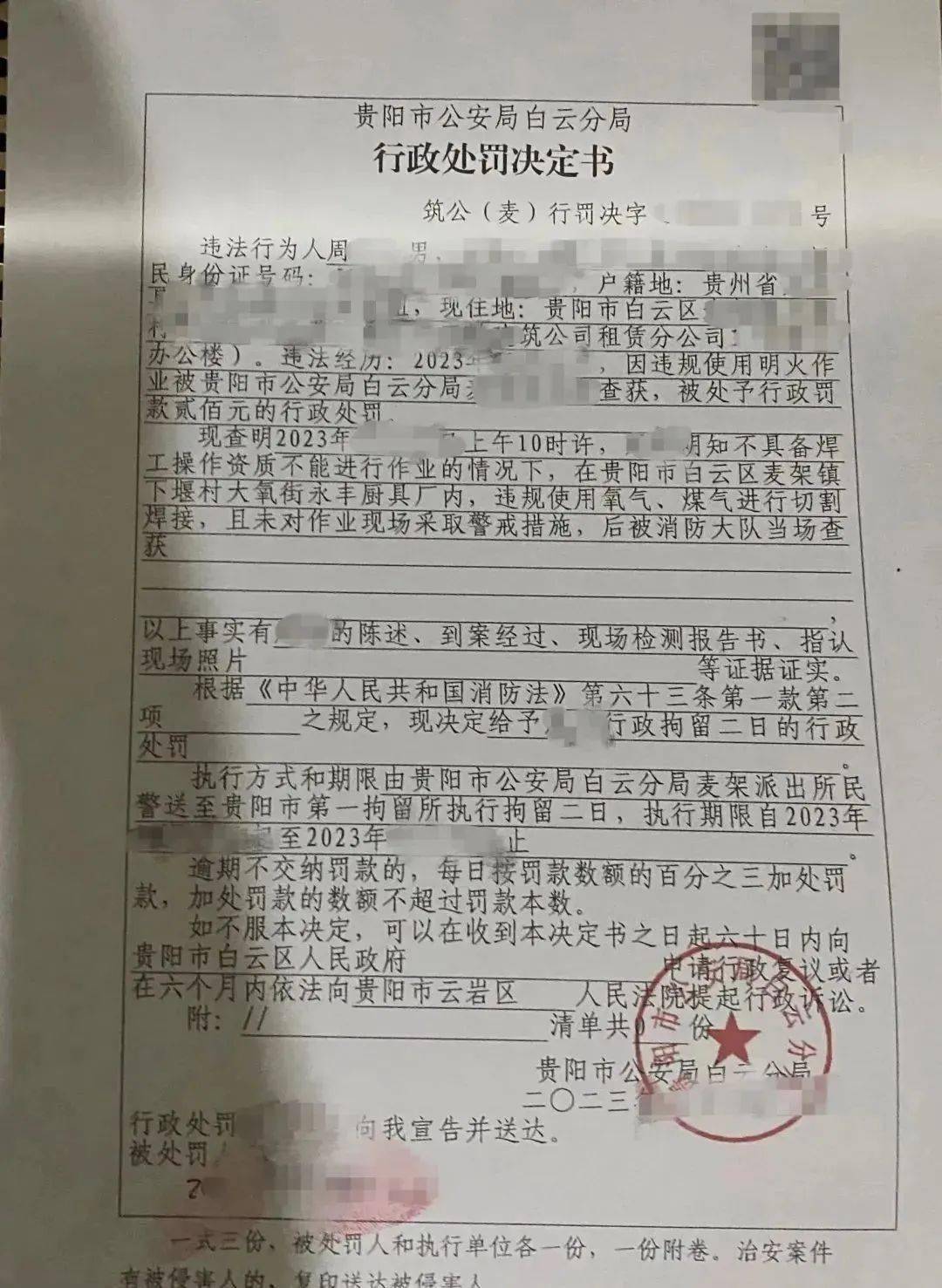 经调查,此前周某因违规动火作业被贵阳市公安局白云分局麦架派出所处予行政罚款贰佰元的行政处罚。