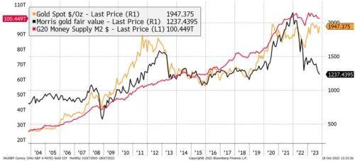 ByteTree首席投资官Charlie Morris表示,在忽略加息和债券收益率飙升的情况下,金价与全球货币供应的关系变得更加紧密。