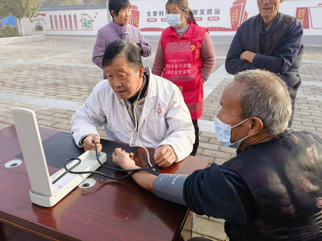 老人听到广播后,陆续来到北堡村卫生室。医护志愿者为老人逐一开展健康义诊,测血压、测血糖……医护志愿者结合每位老人的实际情况,普及健康生活方式、讲解合理用药保健知识,提出科学膳食及适量运动建议,帮助老人养成健康生活习惯,做到有病早治、无病早防。
