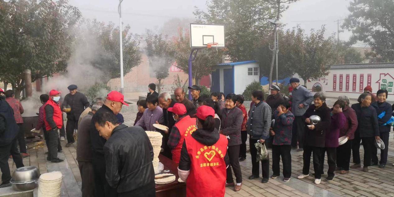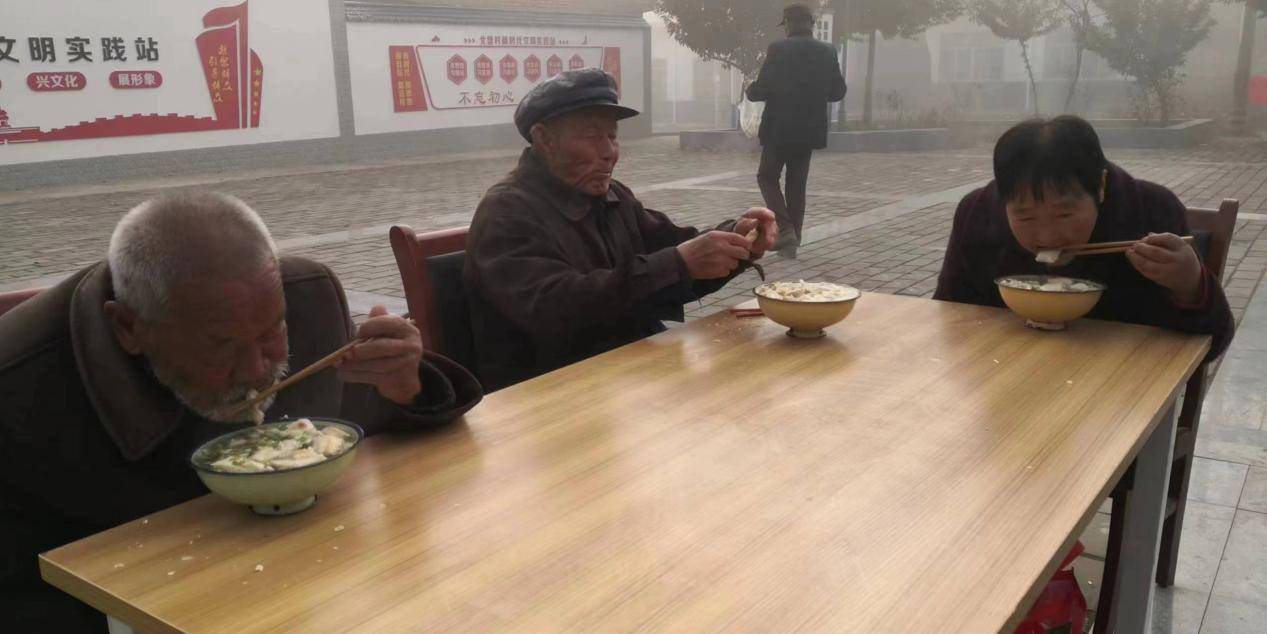 美食志愿者各展所长,忙前跑后、切菜剁肉,备料熬汤、送馍端饭,为90余位老人盛来热气腾腾的羊肉泡馍,老人们围坐在一起,一边享用美食,一边闲话家常。