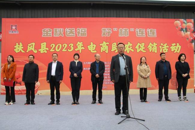 10月19日上午,由扶风县商务和工业信息化局和天度镇人民政府主办的金秋送福 好“柿”连连—扶风县2023年电商助农促销活动启动仪式在天度镇宝鸡乔山农业发展专业合作社举行。