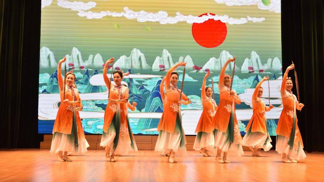 随后,各街镇群文团队各展风采。南桥社区文化活动中心开大艺术团带来的原创舞蹈《万疆》舞姿舒展秀美,以扇为笔描绘出祖国的大好河山;曹家渡社区文化活动中心秋虹舞蹈队的舞蹈《醉春风》将折扇与中国古典舞身韵巧妙融合,把少女陶醉在春风中的不同情态展现得淋漓尽致;来自华阳社区文化活动中心海韵舞蹈队根据经典红歌精心编排舞蹈《唱支山歌给党听》,队员们伴随着熟悉的旋律挥舞着色彩艳丽的长扇,以动人的舞姿表达对党的感恩之心,将演出推向了高潮;舞蹈《翎》由徐家汇社区文化活动中心嘉汇舞蹈队演绎,演员们手持长羽翩翩起舞,用灵动的肢体语言诠释着昂扬的生命气息;新华社区文化活动中心金之鹰男声合唱团浑厚有力的歌声唱响了梦的誓言,一首《365里路》感动了在场的所有人,现场掌声不断。