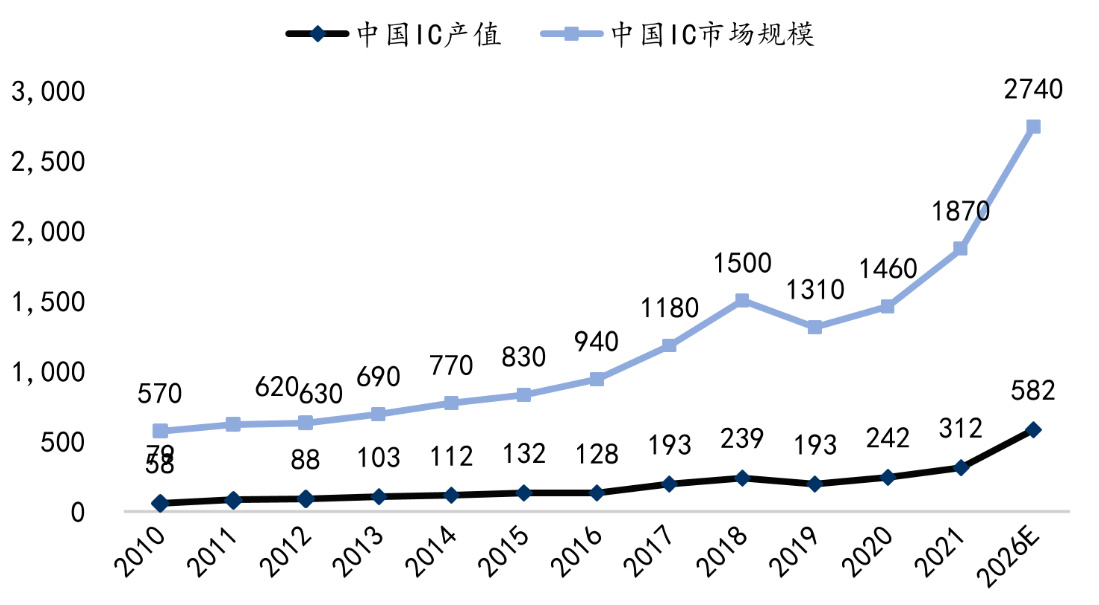 图:我国半导体产值及市场规模