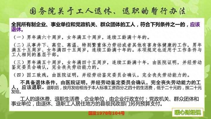对于普通职工来说,我们的退休年龄依然指的是国发1978年104号文件中《关于工人退休退职的暂行办法》和《关于安置老弱病残干部的暂行办法》。