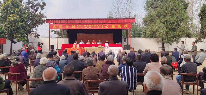 敬老爱老助老是中华民族的传统美德,是中国不断迈入老龄化时代的社会主旋律。10月23日上午,秋风送爽,重阳节, 河南电视台都市·电视剧频道党总支、都市频道二基金组织的“彩虹计划公益帮扶”活动在唐河县张店镇王营村幸福大院隆重举行。为300多位70岁以上的孤寡、困难老人们送上的300袋(壶)米面油,为节日的老人们送温暖、献爱心。