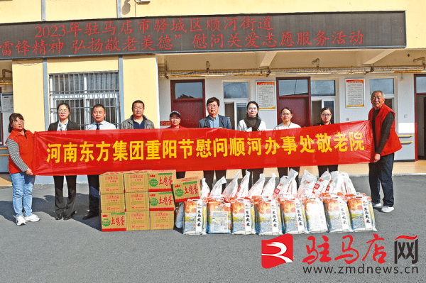 驻马店网讯(记者 张新理)九九重阳节,人大代表献爱心。为了继承和发扬中华民族尊老敬老的优良传统,10月23日重阳节当天,驿城区人大代表、河南东方汽车服务股份有限公司总经理张盺峰带领部分员工来到驿城区顺河街道敬老院,给老人们送去大米、面粉、鸡蛋等生活物资,并向老人们致以节日的祝福。