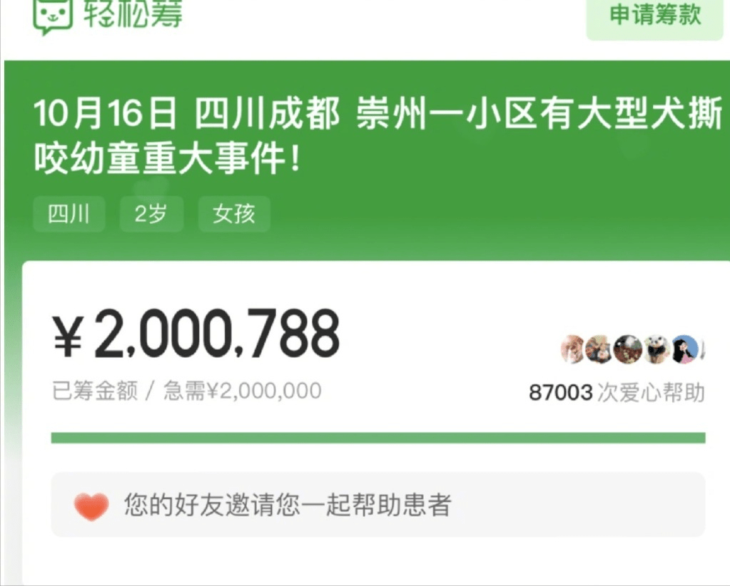 10月23日,一则关于四川崇州被狗咬伤女童的新闻引起了广泛关注。据报道,这名女童在经历了一次严重的狗咬伤后,已经从重症监护室(ICU)转出。在这个过程中,社会各界展现出了对女童的深切关怀和爱心,通过各种渠道筹集了大量的治疗费用。