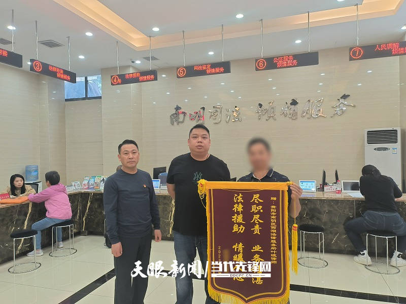 9月20日,赵大哥收到装饰公司转账,结清36815元工钱。10月20日,赵大哥捧着印有“尽职尽责、业务精湛,法律援助,情暖人心”字样的锦旗到中心送至西湖法律服务所,感谢他们对自己的帮助。