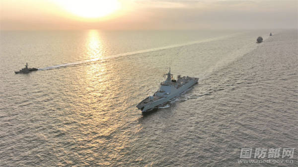 编队舰艇离港后,在科威特附近海域与科海军“法伊拉卡”号巡逻艇进行了海上联合演练。