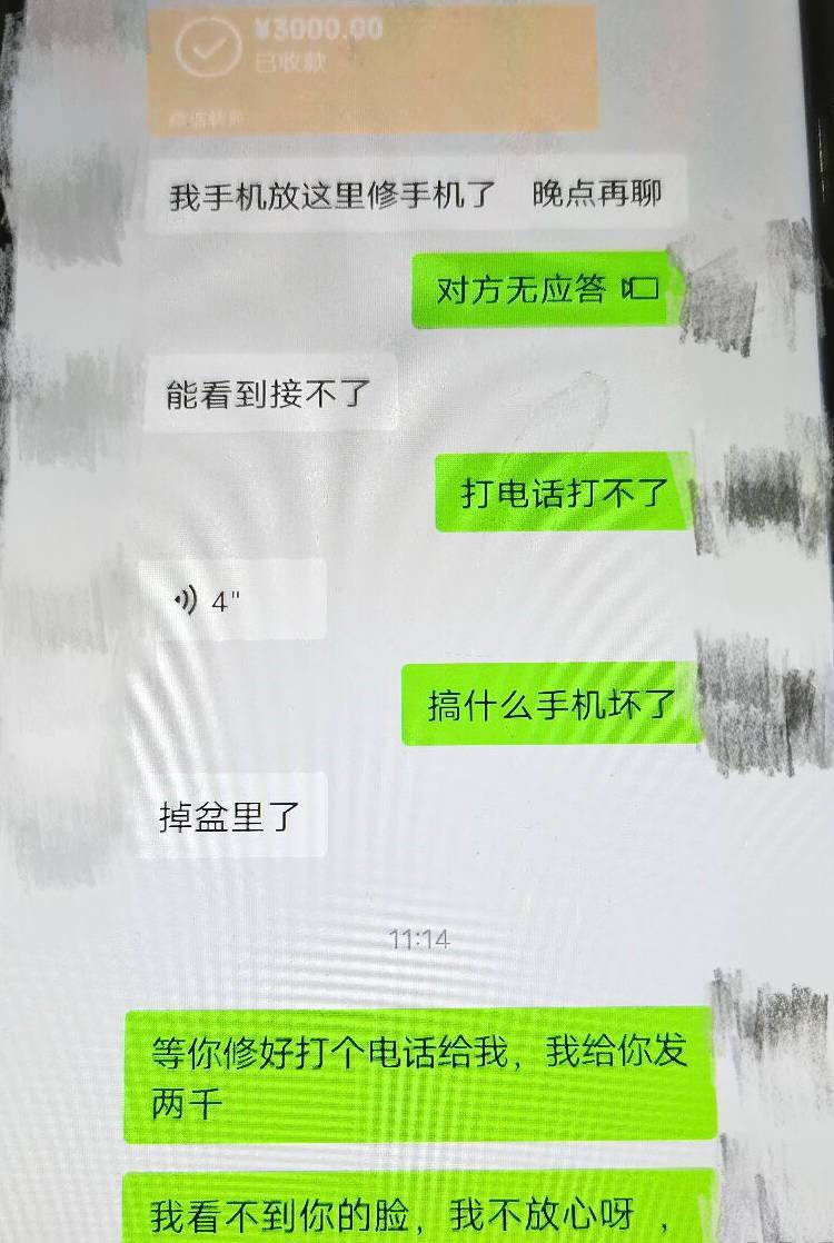 到22日中午,对方称自己手机坏了,还需要1900元维修。段某继续打视频给对方,但对方未接通。文字聊天后段某觉得不对劲,立即到派出所报警。