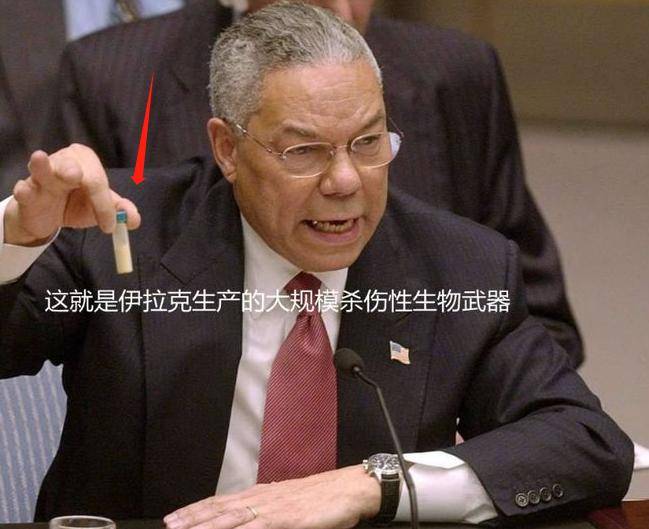 这还只是美国的前菜,只42天,美联军就重创了萨达姆的86万大军。萨达姆元气大伤撤军回国后,美国并没有就此放过他,经过多年的蓄谋、精心策划,经济制裁和故意制造矛盾冲突。在2003年,美国代表拿着拇指大的试管,里面放了洗衣粉,在联合国大会上,说这是萨达姆制造的生化武器。随之不顾联合国强烈反对,派遣大军挥向伊拉克,伊拉克战争打响。