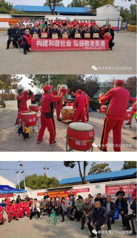 上午9点在王进伯村文化休闲广场上,衡水市爱之光公益协会锣鼓队,模特队,舞蹈队,理发队的志愿者都早早聚集在广场上,准备为老人们表演精彩的文艺节目。
