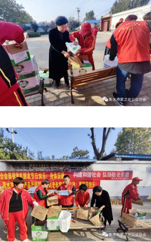 岁岁重阳,今又重阳,在九九重阳节到来之际,为传承弘扬中华民族尊老敬老爱老的传统美德,传播敬老爱老助老的志愿服务理念,助力乡村振兴。10月23日,河北衡水市爱之光公益协会,爱之光公益协会枣强办事处驻王进伯村工作队联合到枣强县唐林镇王进伯村开展了“岁岁重阳,今又重阳”敬老爱老主题活动,爱友们一大早就都从衡水赶到枣强,受到了村里老人们的欢迎。
