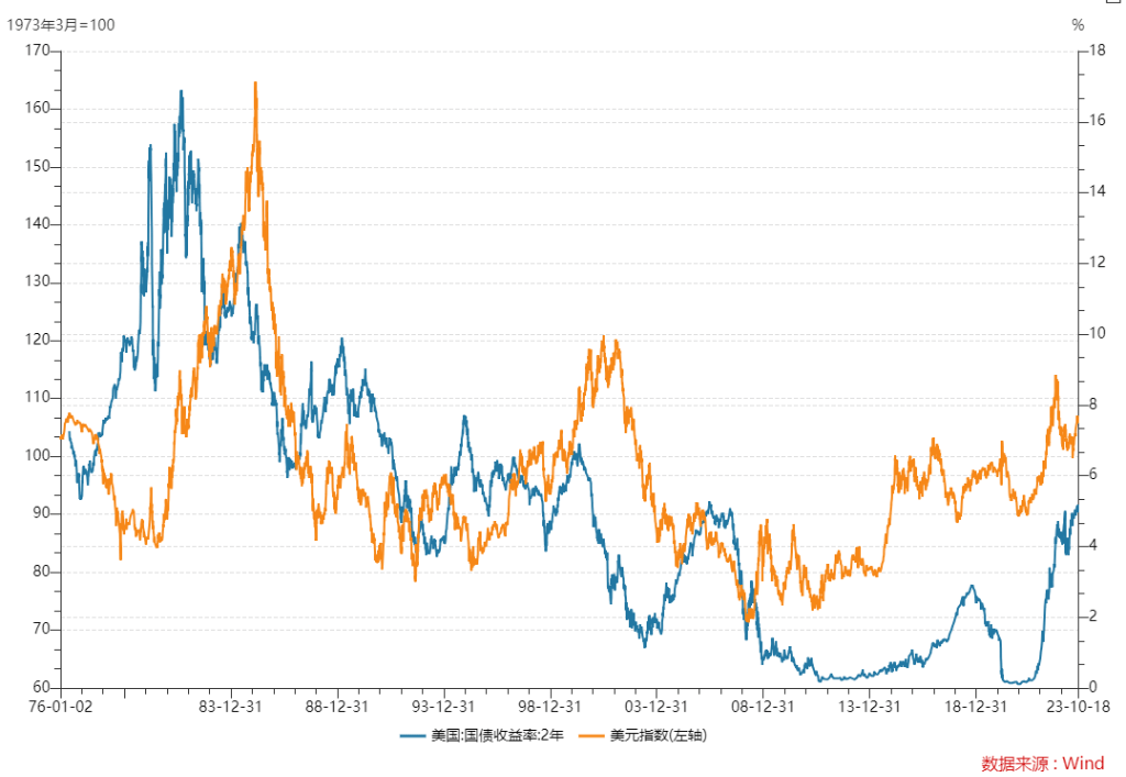 汇率和利率是具有强的相关性。理论上来说,美债价格下跌,利率上升,全球资金会流入美国,美元升值。反之亦然。
