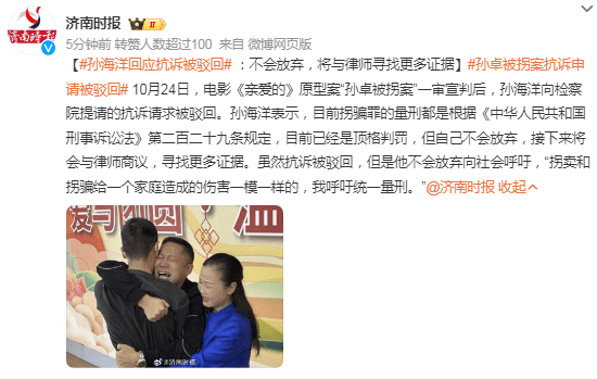 原标题:孙海洋回应抗诉被驳回:不会放弃,将与律师寻找更多证据