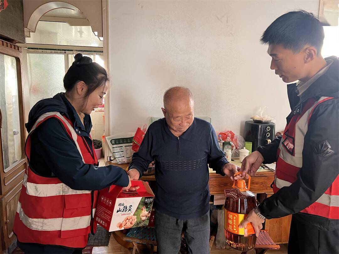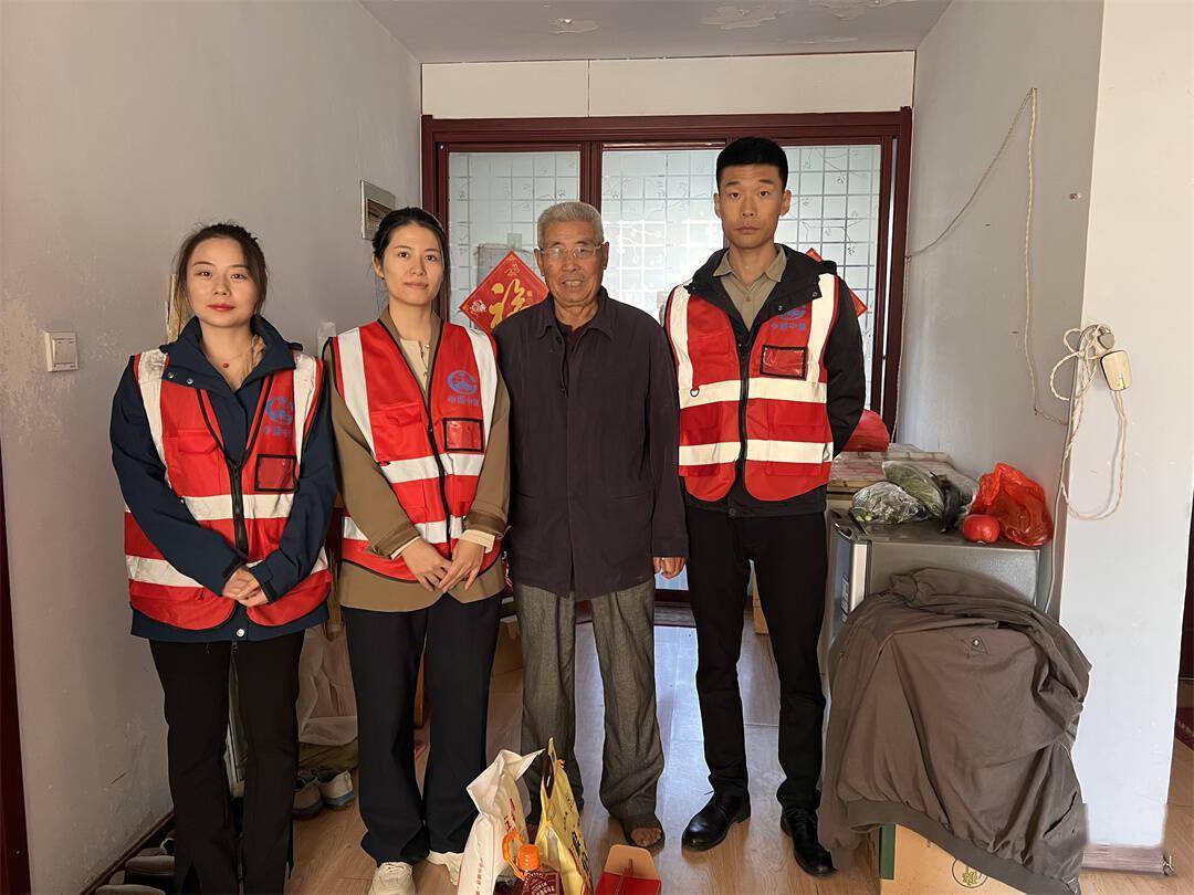 活动中。志愿者们来到项目周边的城阳街道西旺疃社区,与社区工作人员一同走访慰问社区高龄、残疾老人,询问他们的身体、生活状况,叮嘱老人们保重身体注意用气用电安全,并为他们送上了米、面、油、蛋等慰问品。