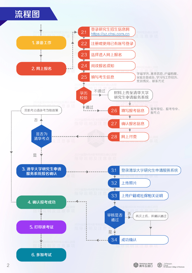 2024年全国MBA联考网上报名将于10月25日22:00截止。请参加完面试并已获得条件录取或者候补录取资格的考生尽快登录“全国硕士研究生招生考试网上报名平台”(https://yz.chsi.com.cn)进行2024级清华-康奈尔双学位金融MBA项目的笔试报名。