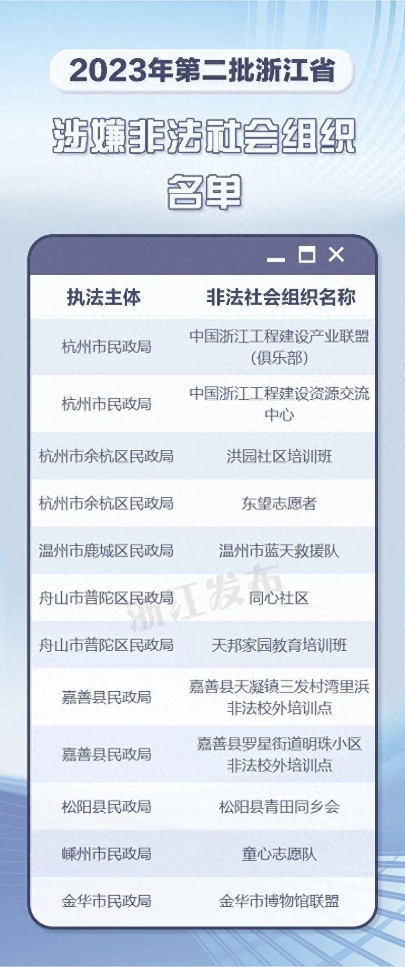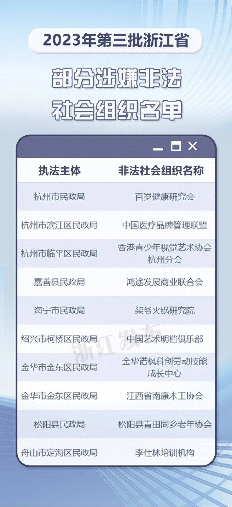 原标题:警惕!浙江公布新一批部分涉嫌非法社会组织名单